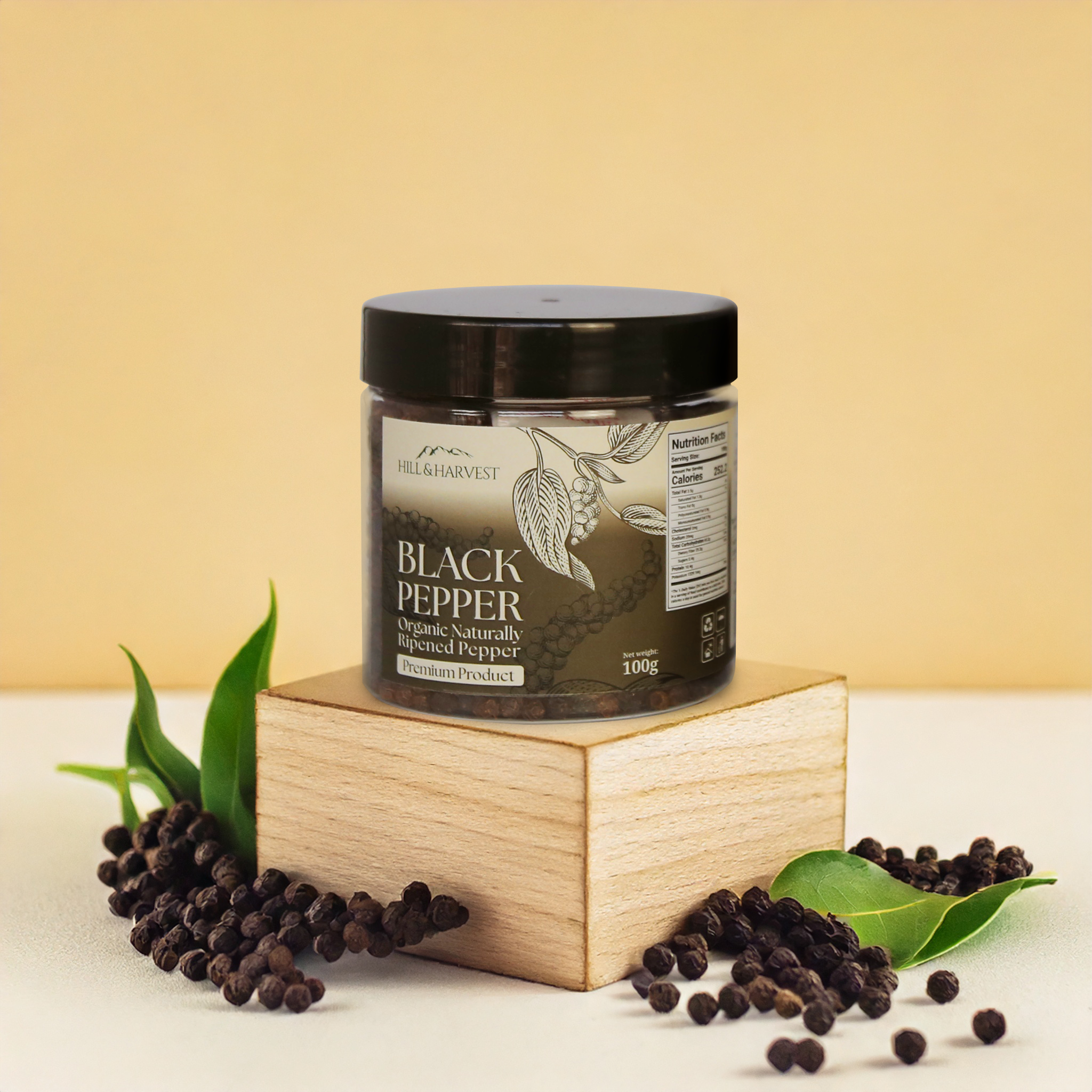 From the lush, sun-drenched farms of Vietnam to your kitchen, Hill & Harvest Organic Black Pepper is a testament to nature’s perfection. Each peppercorn is left to ripen naturally on the vine, absorbing the warmth of the sun and the richness of the earth, before being carefully harvested at peak maturity. The result? A bold, aromatic spice that awakens the senses and elevates every dish it touches.
