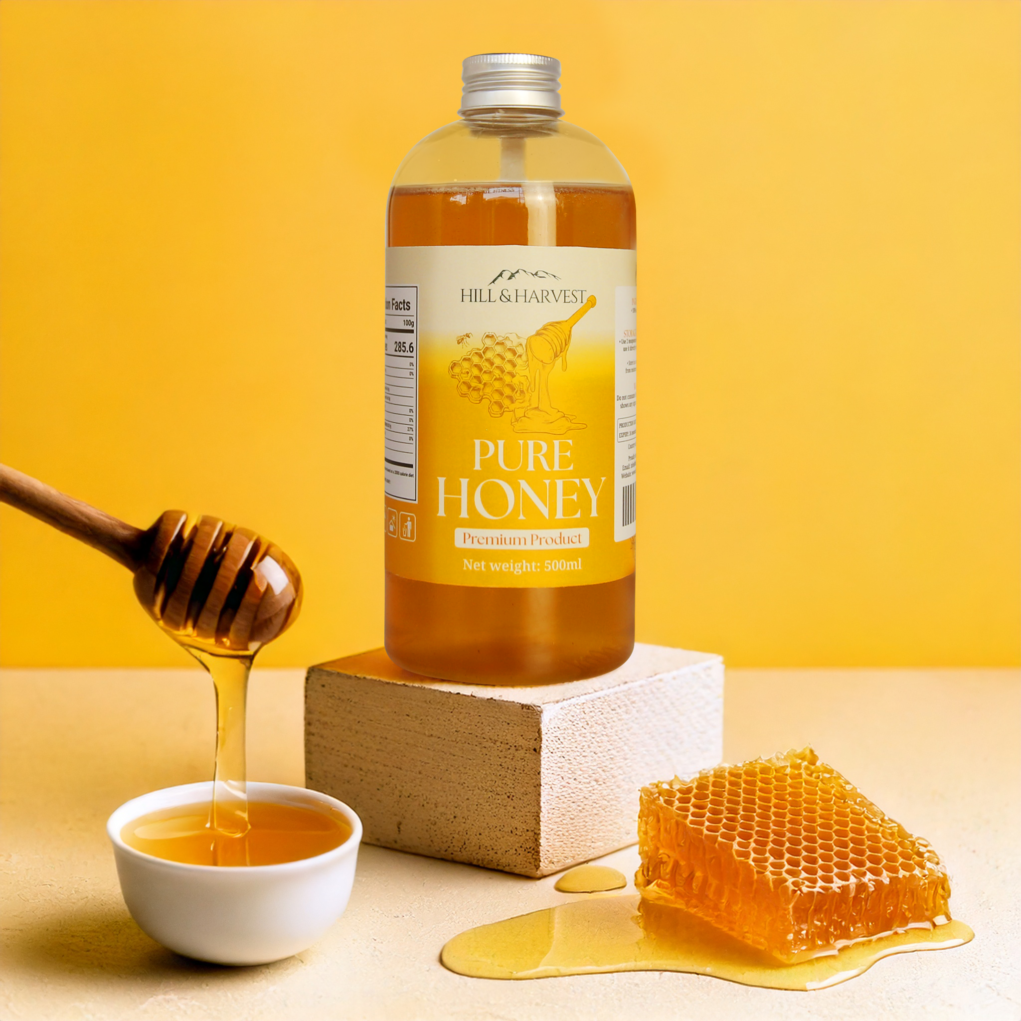 Golden, rich, and naturally sweet, Hill & Harvest Pure Honey is a celebration of nature’s finest nectar. Sourced from pristine landscapes, this 100% natural honey is carefully harvested to preserve its delicate floral notes, smooth texture, and pure, unfiltered goodness. With no additives or preservatives, every drop offers a taste of the wild—raw, wholesome, and deeply nourishing.