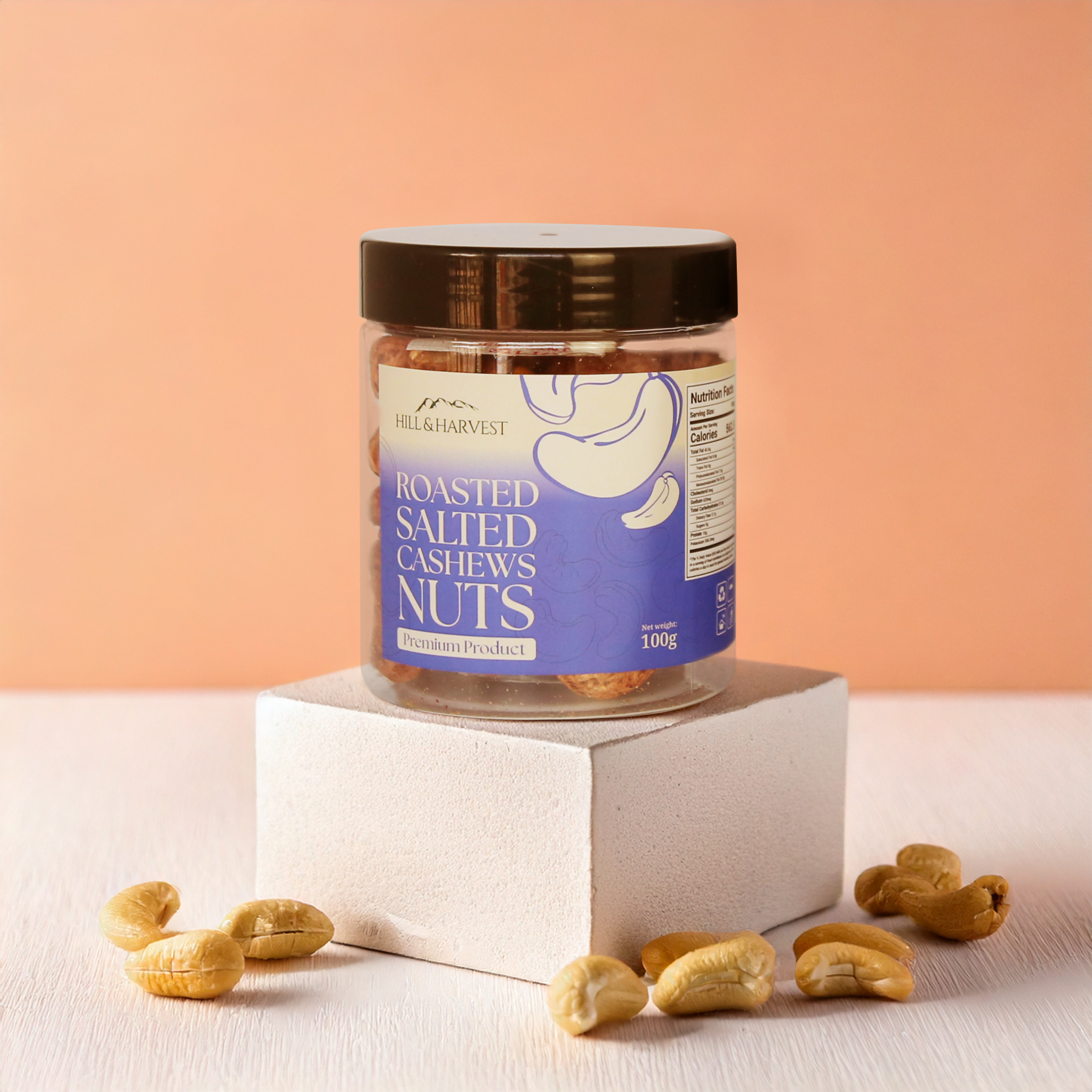 Perfectly roasted, delicately salted, and irresistibly crunchy, Hill & Harvest Roasted Salted Cashews bring you the finest quality nuts in their purest form. Carefully sourced and expertly roasted to golden perfection, each cashew delivers a rich, buttery flavour with a satisfying crunch, finished with just the right touch of salt.